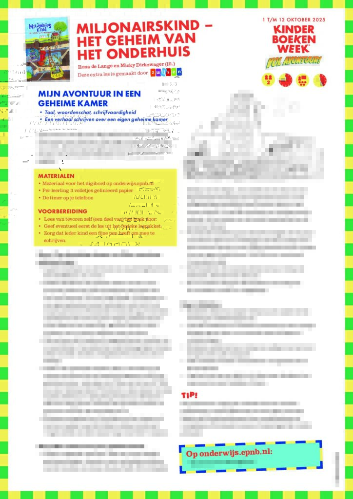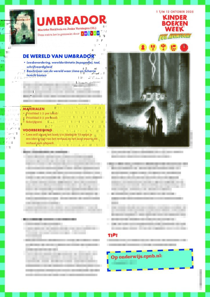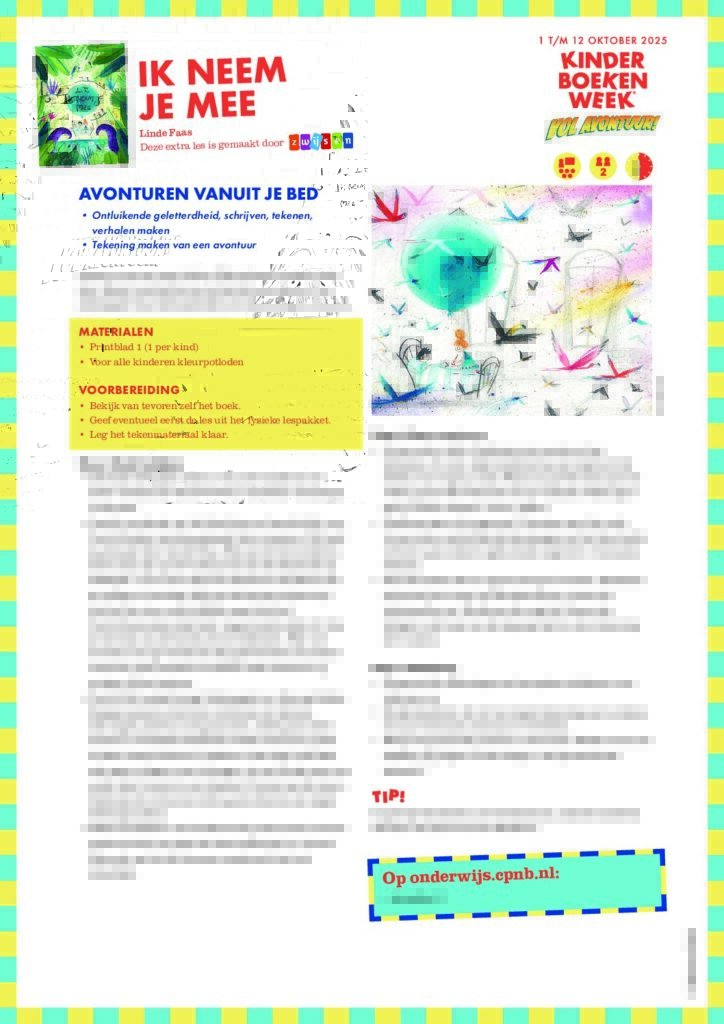 Naast de doebladen zijn er de officiële lesbrieven van het CPNB, volledig afgestemd op het thema Vol avontuur. Deze lesbrieven bieden kant-en-klare inspiratie voor leesbevordering en taalontwikkeling. Ze bevatten praktische tips, creatieve opdrachten en themagerichte activiteiten waarmee je verhalen écht laat spreken in de klas.