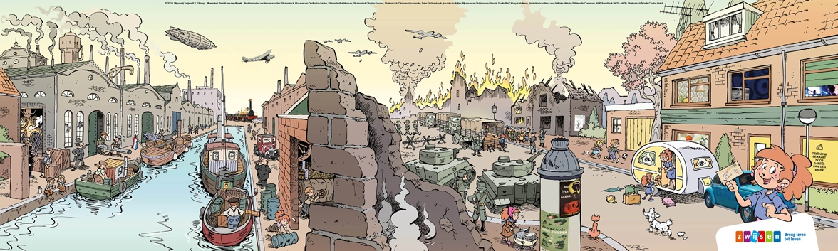 Bij Code D hoort ook een tijdbalk voor jaargroep 5 t/m 8 om op te hangen in de klas. Met deze door Daniël van den Broek prachtig geïllustreerde Tijdbalk ontwikkelen de leerlingen historisch tijdsbesef. Met de bijbehorende activiteitensuggesties (‘Kwartiertje tijdbalk’), kun je de tijdbalk echt actief gebruiken tijdens je lessen. Het advies is dan ook om in iedere klas een tijdbalk op te hangen.