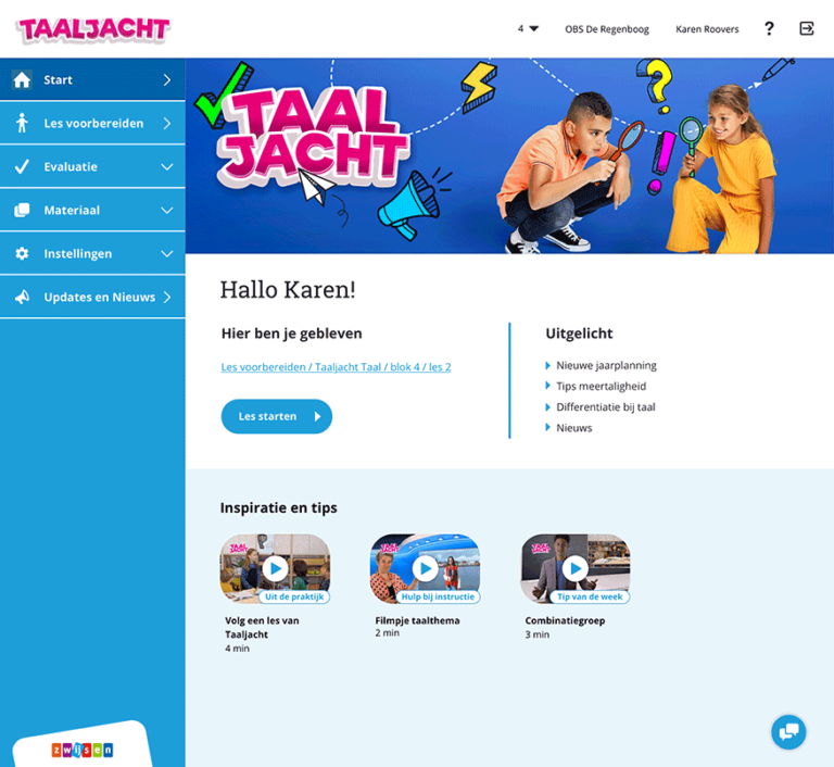 De leerkrachtsoftware ondersteunt je bij het voorbereiden, geven en evalueren van de lessen. In het handige dashboard houd je zicht op de resultaten van je leerlingen kun je de resultaten volgen en vind je tips en tutorials om nog prettiger met Taaljacht te werken. Als de leerlingen de stof volledig digitaal verwerken, kun je hun resultaten real-time volgen.