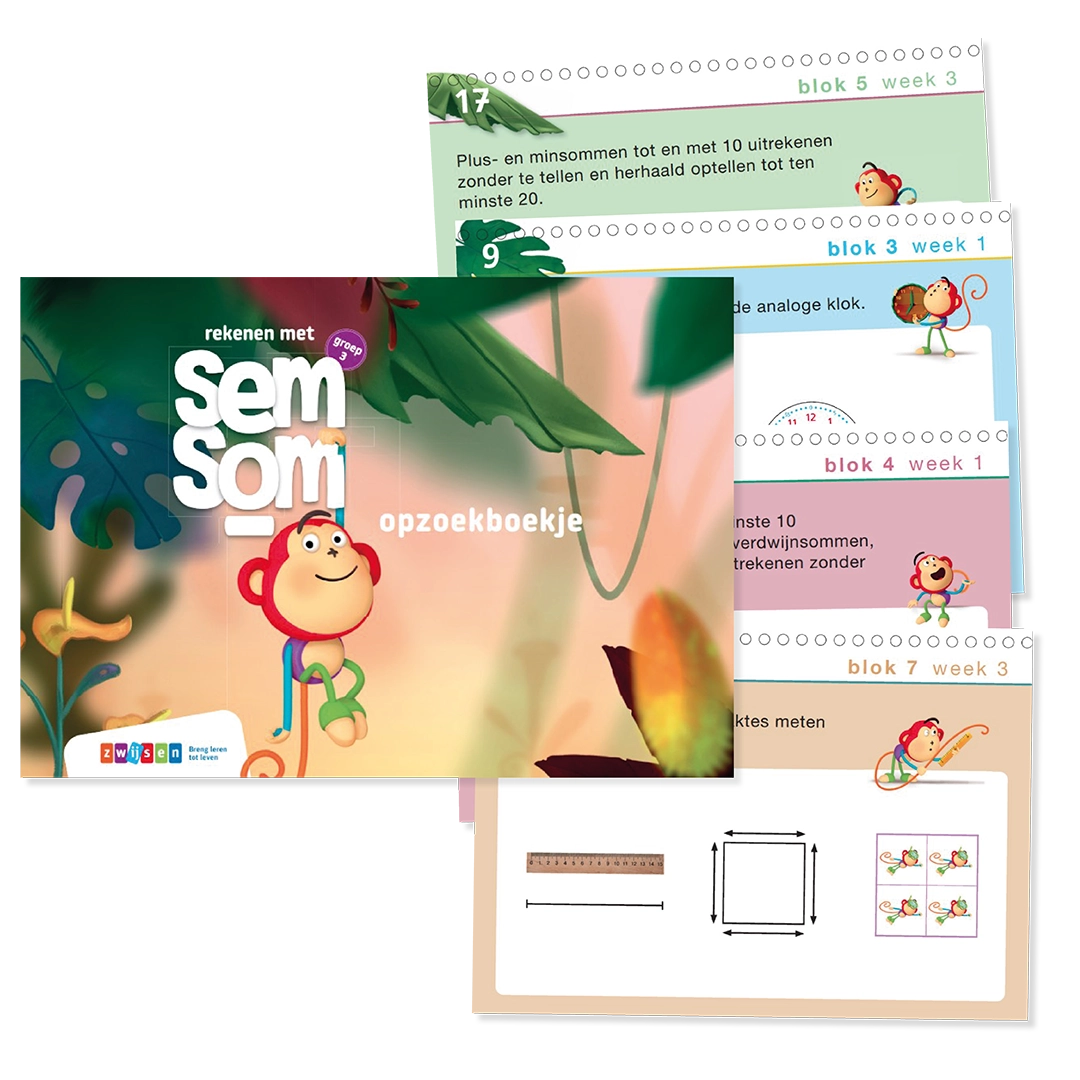 De Semsom-opzoekboekjes bundelen alle rekenstrategieën van Semsom in één handig naslagwerk. Elke strategie is kort en helder beschreven, ondersteund met duidelijke illustraties. Zo vind je snel wat je nodig hebt tijdens het rekenen.