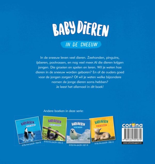 Een kleurrijk, informatief prentenboek over dieren in de sneeuw en hun jongen: hoe worden ze geboren, hoe noemen we ze en wie zorgt er voor ze?