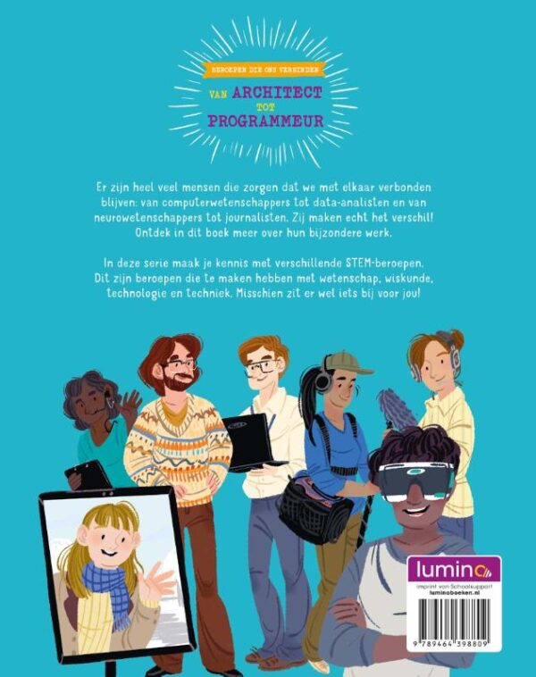 Er zijn heel veel mensen die zorgen dat we met elkaar verbonden blijven: van computerwetenschappers tot data-analisten en van neurowetenschappers tot journalisten. Zij maken echt het verschil! Ontdek in dit boek meer over hun bijzondere werk.