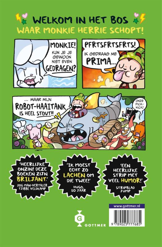 ‘Bunnie vs Monkie’ is het eerste deel in een serie knotsgekke graphic novels vol uitbundige korte strips van Jamie Smart. Welkom in het Bos. Maar pas op, er heerst chaos! Bunnie het konijn en zijn vrienden Wienie de eekhoorn en Big het varken leefden er vredig samen tot de aap Monkie een noodlanding maakte in zijn raket en besloot de macht te grijpen. Nu zet Monkie wanneer hij maar kan de boel op stelten, geholpen door de gestoorde uitvindingen van het stinkdier Stinkie de uitvinder. Maar Bunnie laat dat natuurlijk niet zomaar gebeuren. Zet je schrap, want het grappigste gevecht ooit is begonnen!