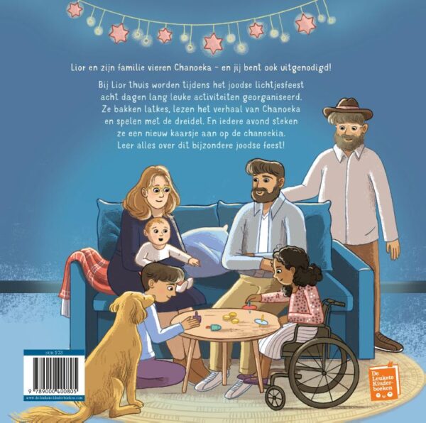 Lior en zijn familie vieren Chanoeka, het joodse lichtjesfeest – en jij bent ook uitgenodigd! Bij Lior thuis worden tijdens dit feest allerlei leuke activiteiten georganiseerd. Ze bakken latkes, lezen het verhaal over Chanoeka en spelen met de dreidel. En acht dagen lang steken ze iedere dag een nieuw kaarsje aan op de chanoekia.
