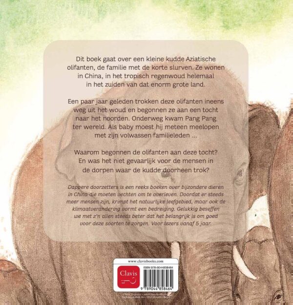 Dit boek gaat over een kleine kudde Aziatische olifanten, de familie met de korte slurven. Ze wonen in China, in het tropisch regenwoud helemaal in het zuiden van dat enorm grote land.