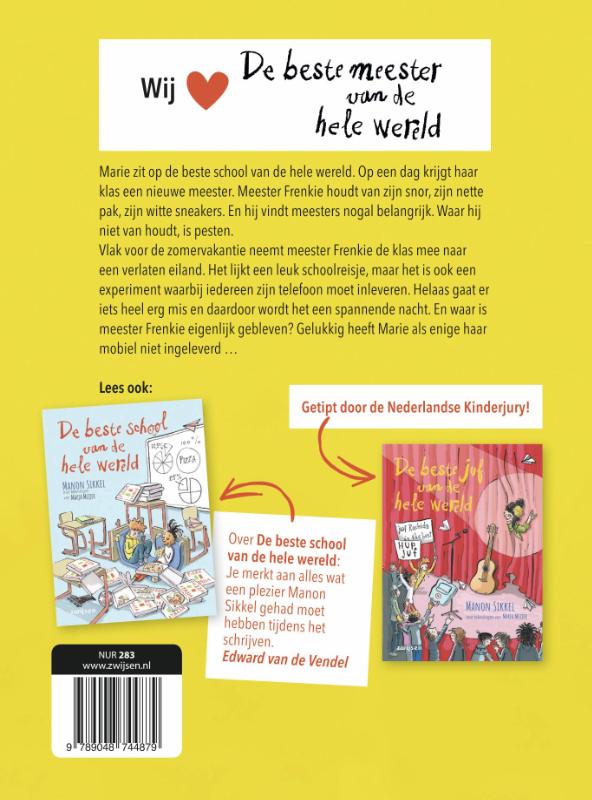 Supergrappig verhaal over Marie en Jack die op de beste school van de hele wereld zitten. Op een dag krijgen ze een nieuwe meester. Meester Frenkie houdt van zijn snor, zijn nette pak, zijn witte sneakers en hij vindt meesters nogal belangrijk. Waar hij niet van houdt, is pesten …