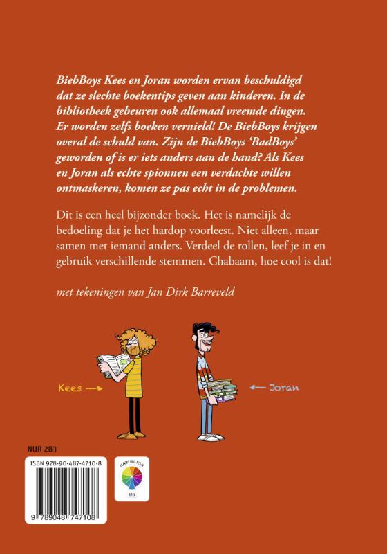 Dit spannende toneelleesboek op AVI M6 gaat over BiebBoys Joran en Kees. Zij geven boekentips aan kinderen, maar worden er nu van beschuldigd dat ze slechte boekentips geven. Er komen steeds meer klachten binnen én de jongens vernielen zelfs boeken. Wat is er toch aan de hand met de jongens?