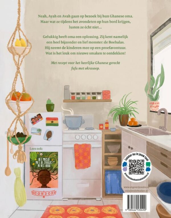 Maar gelukkig heeft oma een oplossing. Zij kent namelijk een heel bijzonder monster: de Boebalas! Dit lieve beest neemt de kinderen mee op een proefavontuur om zo nieuwe smaken – en daarmee ook hun eigen cultuur – te ontdekken.