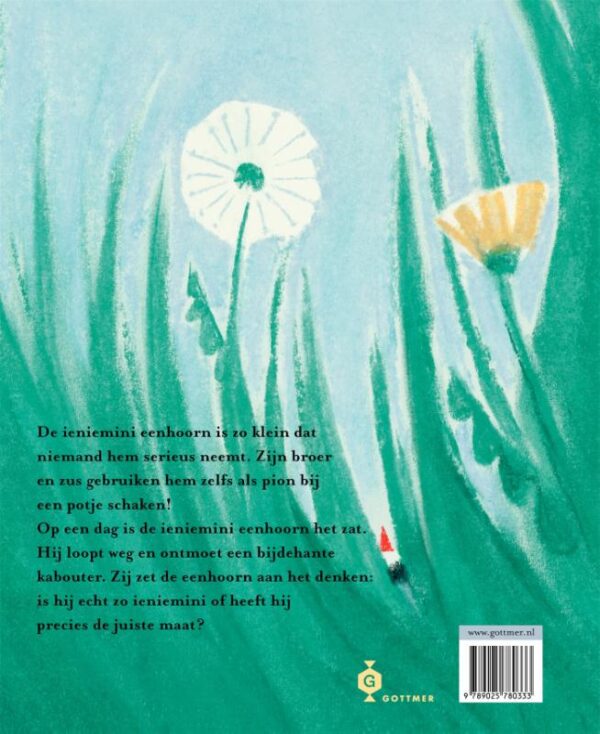 Maak kennis met de ‘ieniemini eenhoorn’ in dit grappige, moderne sprookje over eenhoorn die ontdekt hoe hij zijn plekje vindt in een wereld die niet lijkt te zijn gemaakt voor zijn lengte. Lang, lang geleden, leefde een heel bijzondere eenhoorn: de ieniemini eenhoorn. Samen met zijn familie woonde hij in een reusachtig paleis, compleet met extra grote tapijten en enorme porties eten. En als zijn grote broer en zus schaakten, gebruikten ze hem als pion. Maar wanneer het allemaal even te veel wordt voor ieniemienie besluit hij om weg te lopen, en zo belandt hij plotseling bij een eigenzinnige kabouter. Deze ontmoeting doet hem nadenken: is hij echt zo klein, of heeft hij eigenlijk precies de juiste maat?
