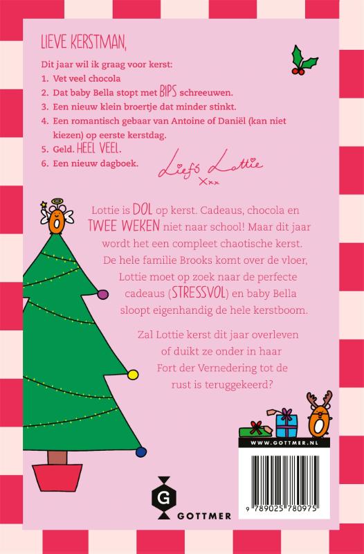 Lottie Brooks is dol op Kerstmis: cadeautjes uitpakken, zoveel KitKat Chunky’s eten als ze wil, én twee weken geen school! Maar dit jaar belooft Kerst een tikkeltje chaotischer te worden dan normaal. De hele familie Brooks komt langs voor de feestdagen (met een paar onverwachte gasten…), En alsof dat nog niet genoeg is, gaan Lottie en haar vriendinnen lootjes trekken (dus moet ze het perfecte cadeautje vinden) en weet baby Bella de kerstboom te slopen. Zal Lottie de feestchaos te doorstaan, of verschuilt ze zich in haar schaamtefort totdat de kust weer veilig is? Eén ding is zeker: dit wordt een Kerstmis die Lottie nooit zal vergeten!