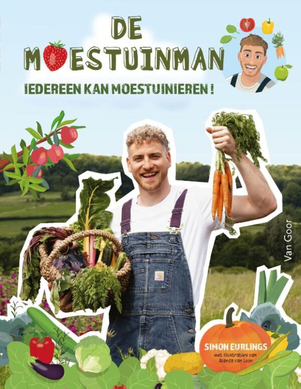 Met meer dan 75.000 volgers op social media is Simon Eurlings, de Moestuinman, een rijzende ster. In dit boek geeft hij op een grappige en speelse manier tips en tricks en legt hij uit hoe je je eigen moestuin kunt beginnen. Je hoeft er geen tuin of stuk land voor te hebben, zelfs op je balkon of in je vensterbank kun je aan de slag. Van de grond tot de mond, alles komt aan bod. Kinderen leren zo waar hun eten vandaan komt en worden geprikkeld om zelf aan de slag te gaan.