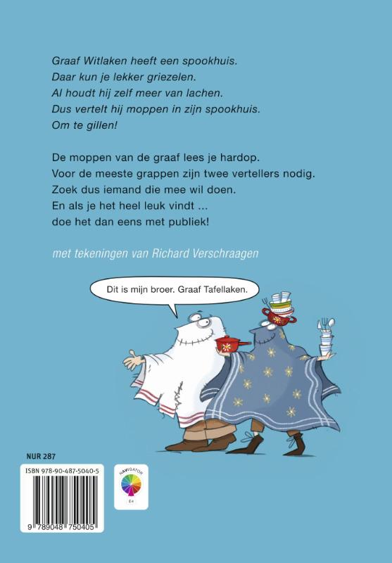 Jan Geestig heeft een spookhuis in een gewone straat. Buurman Babak is er niet blij mee, maar Fina en Sem wel. Zij zijn dol op alles wat spannend en eng is. Lees alles over het grappige of toch enge spookhuis in dit toneellezen moppenboek op AVI E4.
