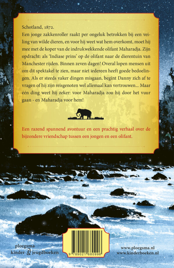 Schotland, 1872. Een jonge zakkenroller raakt per ongeluk betrokken bij een veiling van wilde dieren, en voor hij het weet wat hem overkomt, moet hij mee met de koper van de indrukwekkende olifant Maharadja. Zijn opdracht: als ‘Indiase prins’ op de olifant naar de dierentuin van Manchester rijden. Binnen zeven dagen! Overal lopen mensen uit om dit spektakel te zien, maar niet iedereen heeft goede bedoelingen. Als er steeds vaker dingen misgaan, begint Danny zich af te vragen of hij zijn reisgenoten wel allemaal kan vertrouwen… Maar één ding weet hij zeker: voor Maharadja zou hij door het vuur gaan – en Maharadja voor hem!