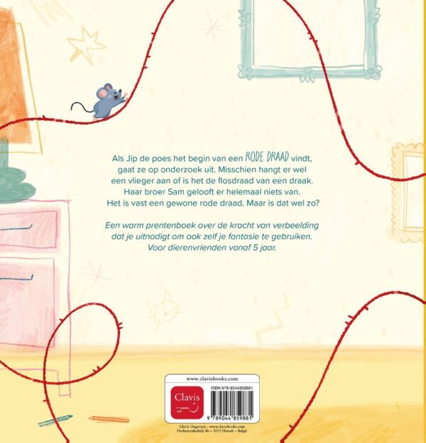 Als Jip de poes het begin van een rode draad vindt, gaat ze op onderzoek uit. Misschien hangt er wel een vlieger aan, of misschien is het de flosdraad van een draak. Haar broer Sam gelooft er helemaal niets van. Het is vast een gewone rode draad. Maar is dat wel zo?