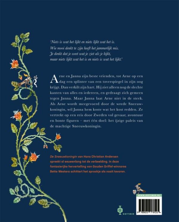 Het tijdloze en betoverende avontuur ‘De sneeuwkoningin’ van sprookjesverteller Hans Christian Andersen blijft tot op de dag van vandaag de verbeelding prikkelen. In een slimme raamvertelling geeft Bette Westera haar eigen draai aan de klassieker en neemt ze lezers mee in het avontuur van Arne en Janna, beste vrienden die uit elkaar worden gedreven. Wanneer Arne ontvoerd wordt door de wrede Sneeuwkoningin, is Janna vastberaden om hem te redden en begint ze aan een gevaarlijke reis naar het ijzige paleis van de Sneeuwkoningin. Onderweg ontmoet ze kleurrijke personages en ontdekt ze de ware kracht van liefde en vriendschap. Deze nieuwe editie van Andersens ‘De sneeuwkoningin’ is een unieke hervertelling die jong en oud zal betoveren!