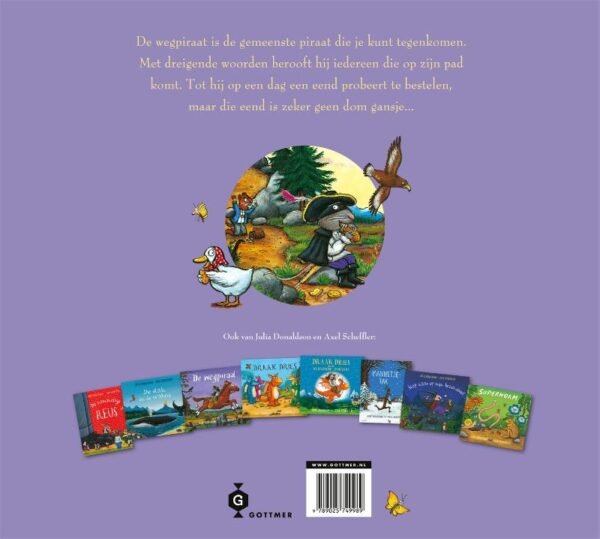 De wegpiraat jat van alles van iedereen – de noten van de eekhoorn, de melk van de kat – hij jat zelfs het hooi van zijn eigen paard! Hij is de gemeenste en slechtste piraat die je onderweg kunt tegenkomen. Maar niet meer voor lang! Een eendje, dat niet al te snugger lijkt (maar het wel is), is de wegpiraat uiteindelijk te slim af en dwingt hem letterlijk op zijn knieën.
