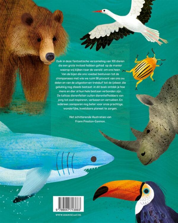 Van de bijen die ons voedsel bestuiven tot de chimpansees die ruim 98% van ons DNA delen en van de uitgestorven trekduif tot de ijsbeer, die gelukkig nog steeds bestaat: in dit boek ontdek je hoe mens en dier al hun hele bestaan verbonden