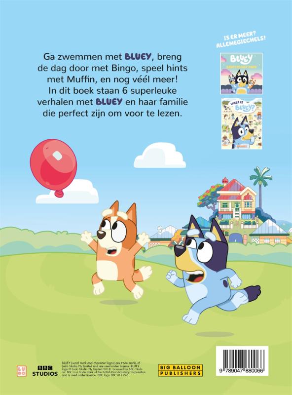 Allemegiechels! In het nieuwe prentenboek ‘Bluey Dubbeldik Verhalenboek’ staan zes superleuke verhalen over Bluey en haar familie die je heerlijk kunt voorlezen. Ga zwemmen met Bluey, breng de dag door met Bingo, speel hints met Muffin en nog véél meer!