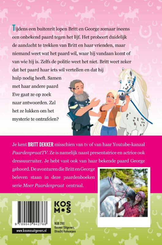 In ‘Een paard met een missie’ probeert een onbekend paard duidelijk de aandacht te trekken van Britt en haar vrienden, maar niemand weet wat het paard wil, waar hij vandaan komt of van wie hij is. Zelfs de politie weet het niet. Britt weet zeker dat het paard haar iets wil vertellen en dat hij hulp nodig heeft. Samen met George en Eve gaat ze op zoek naar antwoorden. Zal het hun lukken om het mysterie te ontrafelen?
