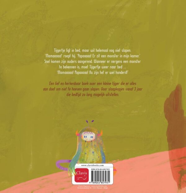 Tijgertje ligt in bed, maar wil helemaal nog niet slapen. ‘Mamaaaaa!’ roept hij. ‘Papaaaaa! Er zit een monster op mijn kamer.’ Snel komen zijn ouders aangerend. Wanneer er nergens een monster te bekennen is, moet Tijgertje weer naar bed …