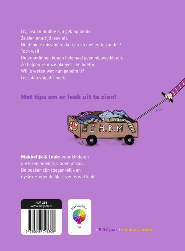 Zelf mode maken, hoe leuk is dat? En als je de kleren niet nieuw koopt, is dat beter voor het klimaat. Aansprekend verhaal over zelf kleding maken, kleding ruilen en meer! Dit leuke boek op AVI E4 is voor kinderen van 9-12 jaar in de serie ‘Makkelijk & Leuk’, speciaal voor kinderen die lezen moeilijk vinden of saai. Zo krijgen zij weer plezier in lezen. Dyslexievriendelijk!