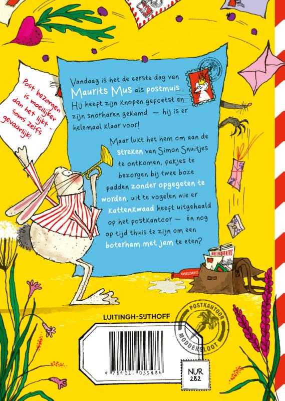 Maar op zijn eerste dag gaat er van alles mis. Hij raakt verdwaald in een ondergronds doolhof (en wordt gered door een maf konijn) en belandt tussen twee ruziënde paddenburen. Post bezorgen is helemaal niet zo makkelijk – soms zelfs gevaarlijk. Lukt het hem om al zijn post te bezorgen? En belangrijker: wordt hij net zo'n goede postmuis als zijn oudtante Ada?