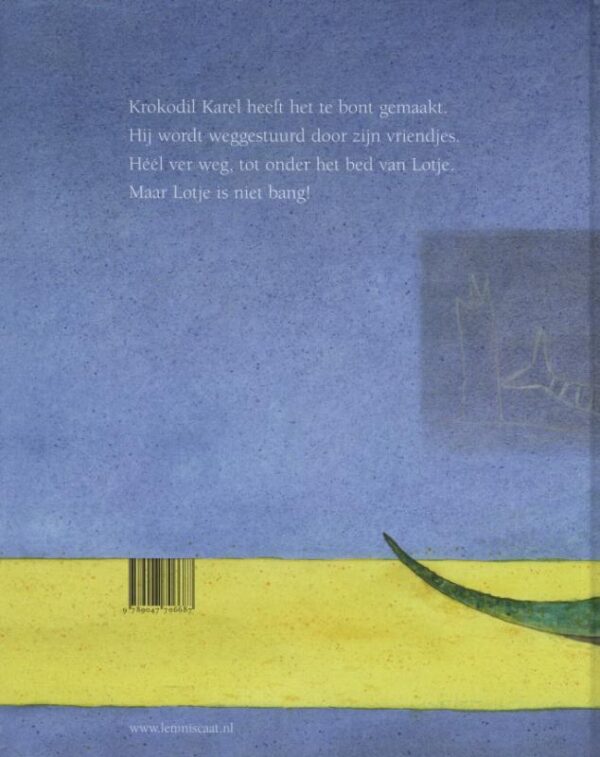 Krokodil Karel heeft het te bont gemaakt. Hij wordt weggestuurd door zijn vriendjes. Héél ver weg, tot onder het bed van Lotje. Maar Lotje is niet bang! Dé klassieker voor de komende generaties – geheel herziene editie Wie is er niet groot mee geworden? Sinds het verschijnen van Er ligt een krokodil onder mijn bed! in 1980 hebben talloze kinderen hun angst voor het donker overwonnen met dit favoriete prentenboek. Maar kinderen veranderen en Ingrid en Dieter Schubert ook. Dus komen zij met een totaal vernieuwde Er ligt een krokodil onder mijn bed! Het meisje dat de krokodil onder haar bed ontdekt, denkt nu: leuk! Ze besluit het beest met haar hoepel te temmen, en dat is het begin van een bijzondere vriendschap. Net zo stoer en eigenzinnig als hun hoofdpersoon zijn de nieuwe illustraties van Ingrid en Dieter Schubert. In krachtige, sober e prenten vertellen ze het verhaal dat – minstens voor de komende vijfendertig jaar – de jonge lezers vol vertrouwen naar bed zal laten gaan.