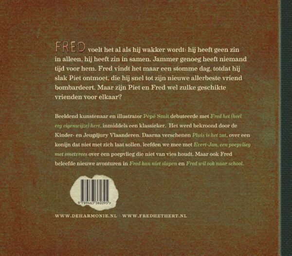 Fred voelt het als hij wakker wordt: hij heeft geen zin in alleen, hij heeft zin in samen. Jammer genoeg heeft niemand tijd voor hem. Fred vindt het maar een stomme dag, totdat hij slak Piet ontmoet, die hij snel tot zijn nieuwe allerbeste vriend bombardeert. Maar zijn Piet en Fred wel zulke geschikte vrienden voor elkaar?