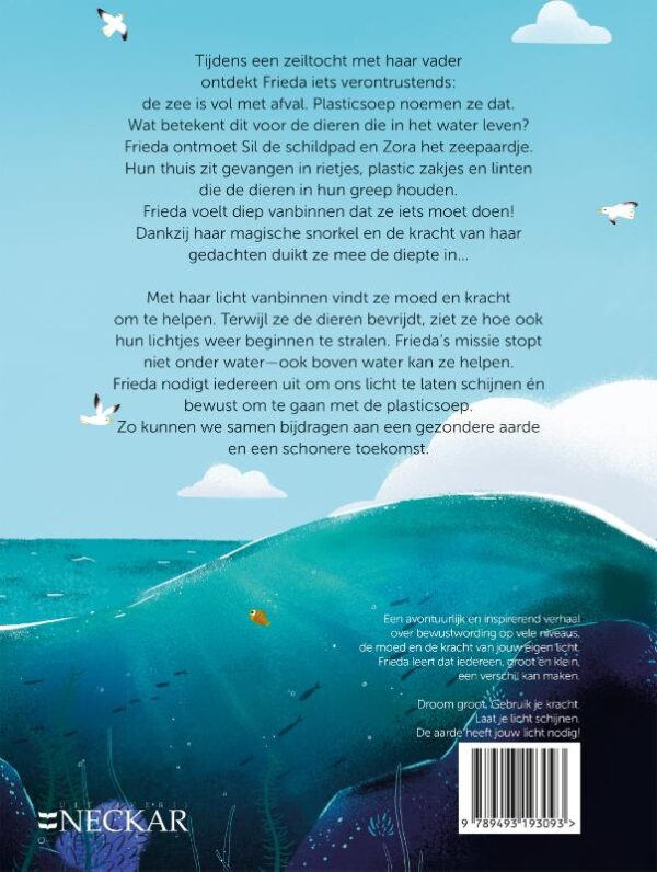 Tijdens een zeiltocht met haar vader ontdekt Frieda iets verontrustends: de zee is vol met afval. Plasticsoep noemen ze dat. Wat betekent dit voor de dieren die in het water leven?