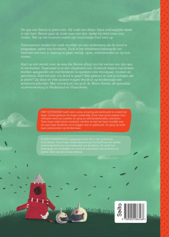 De opa van Senne is gestorven. Hij voelt een diepe, bijna ondraaglijke steek in zijn hart. Senne gaat op zoek naar een slot, opdat hij niets meer zou voelen. Net op dat moment merkt zijn buurmeisje Fien hem op.Volwassenen vinden het vaak moeilijk om een onderwerp als de dood te bespreken, zeker met kinderen. Toch is het ontzettend belangrijk om hierover met hen in dialoog te gaan: eerlijk, open, onomwonden en op hun niveau.Hart op slot vertelt over de weg die Senne aflegt om het verlies van zijn opa te verwerken. Daarnaast is er een uitgebreid non-fictieluik waarin handvaten worden aangereikt om met kinderen te spreken over doodgaan, rouwen en gevoelens. Doet het pijn om dood te gaan? Wat gebeurt er met je lichaam als je sterft? Op deze en vele andere vragen wordt er op kindermaat een antwoord geboden. Met voorwoord van prof. dr. Manu Keirse, dé specialist rouwverwerking in Nederland en Vlaanderen.
