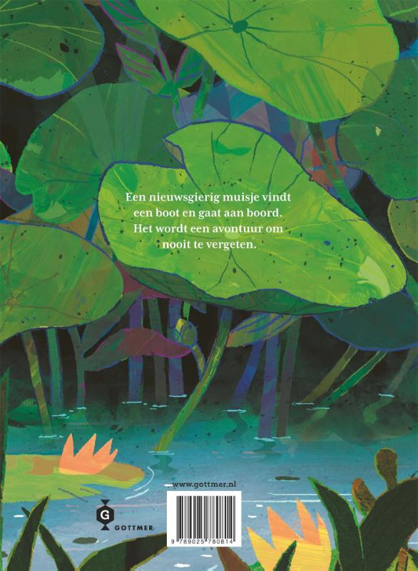 ‘Hé, kijk! Een boot!’ roept Muis enthousiast. Vol verwondering klimt ze aan boord. Zou het een piratenschip zijn? Of misschien wel de boot van een ontdekkingsreiziger? Terwijl ze zich dat afvraagt, merkt Muis dat de boot langzaam weg begint te drijven. Het is te laat om nog uit te stappen! Wat volgt is een avontuur vol verrassingen: een waterval, een hevige storm, de open zee en dikke mist… Muis vaart langs eilanden, een bende piraten en imposante schepen. Na een tijdje ziet Muis plots iets heel bekends: ‘Hé, kijk! Mijn huis!’