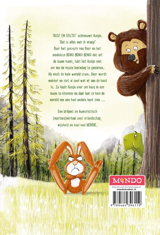 Door het gesnurk van Beer en het eindeloze BENG! BENG! BENG! dat uit de boom komt, lukt het Konijn niet om van de mooie lentedag te genieten.