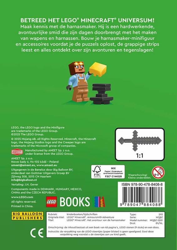 Betreed het LEGO® Minecraft®-universum! Maak in ‘Het avontuur van de harnasmaker’ kennis met de harnasmaker. Hij is een hardwerkende, avontuurlijke smid die zijn dagen doorbrengt met het maken van wapens en harnassen. Bouw je harnasmaker-minifiguur met accessoires voordat je de puzzels oplost, de grappige strips leest en alles ontdekt over zijn avonturen en tegenslagen!