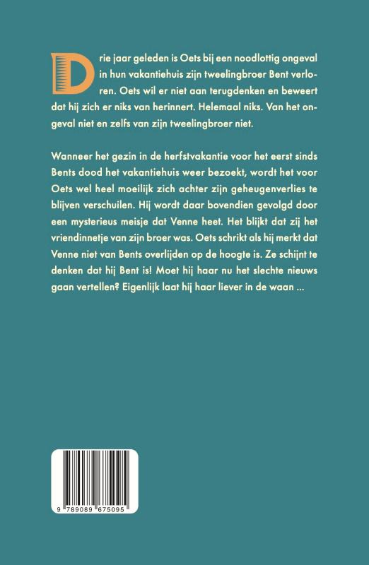 Wanneer het gezin in de herfstvakantie voor het eerst sinds Bents dood het vakantiehuis weer bezoekt, wordt het voor Oets wel heel moeilijk zich achter zijn geheugenverlies te blijven verschuilen. Hij wordt daar bovendien gevolgd door een mysterieus meisje dat Venne heet. Het blijkt dat zij het vriendinnetje van zijn broer was. Oets schrikt als hij merkt dat Venne niet van Bents overlijden op de hoogte is. Ze schijnt te denken dat hij Bent is! Moet hij haar nu het slechte nieuws gaan vertellen? Eigenlijk laat hij haar liever in de waan …