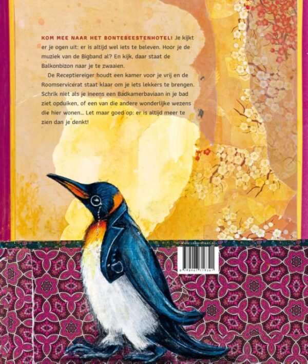 Er is van alles te zien in het Bontebeestenhotel. Wat denk je van de Draaideurdobermanns, die je welkom heten in het hotel? De Garderobegorilla, die zo van roze houdt en het liefst de jasjes van alle bezoekers past? De Badkamerbaviaan, die uren met zijn badeendjes speelt?