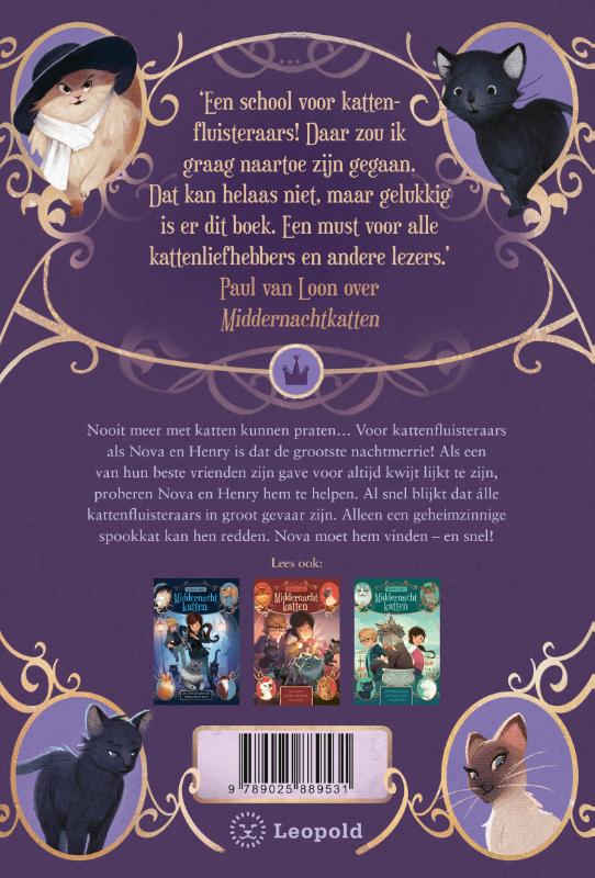 Op zoek naar de spookkat is een spannend avontuur over een geheime wereld waarin katten de baas zijn, met kinderen in een heldenrol. Alle delen van de Middernachtkatten-serie zijn los van elkaar te lezen. Voor lezers vanaf 10 jaar.