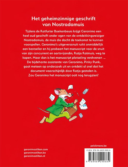 Tijdens de Ratfurter Boekenbeurs krijgt Geronimo een heel oud geschrift onder ogen van de ontdekkingsreiziger Nostradamuis, de muis die dacht de toekomst te kunnen voorspellen. Geronimo’s uitgeverssnuit ruikt onmiddellijk een bestseller en probeert het manuscript voor de snuit van zijn concurrent en aartsvijandin, Ratja Ratmuis, weg te kapen. Maar dan is het manuscript plotseling spoorloos verdwenen … De bijdehante assistente van Geronimo, Pinky Punk, gaat meteen op onderzoek uit en ontdekt al snel dat het document waarschijnlijk door Ratja gestolen is. Zou Geronimo het manuscript ooit nog terugzien?