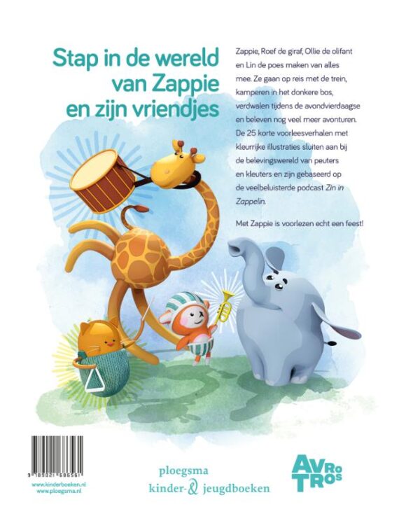 Zin in Zappelin is een populair tv-programma en veelbeluisterde verhalenpodcast van AVROTROS voor peuters en kleuters. In dit boek zijn de leukste 25 verhalen opgenomen. De vrolijke illustraties van TerraLemon maken het voorlezen tot een feestje!