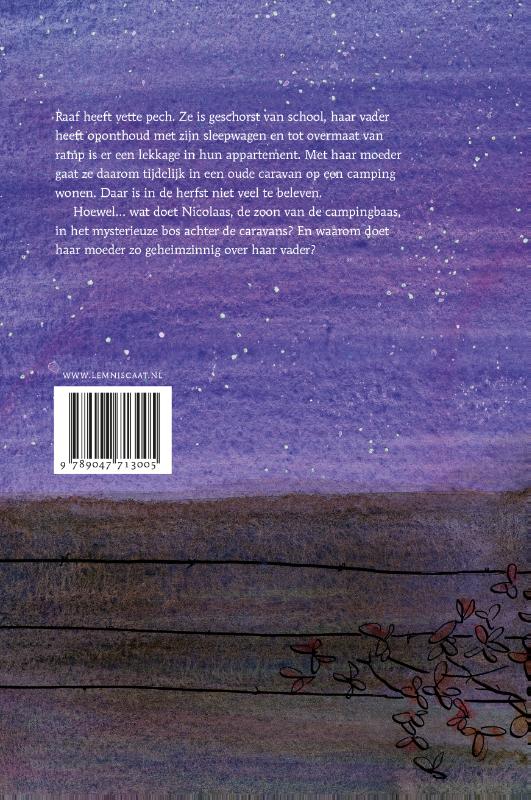 In de herfst is er niet veel te beleven – zeker niet als haar moeder gewoon moet werken en haar beste vriendin Miracle op school zit, zonder haar. Toch heeft Raaf geen kans om zich te vervelen. Want wat doet Nicolaas, de zoon van de campingbaas, in het mysterieuze bos achter de caravans? En waarom doet haar moeder zo geheimzinnig over haar vader, die maar niet te bereiken is?