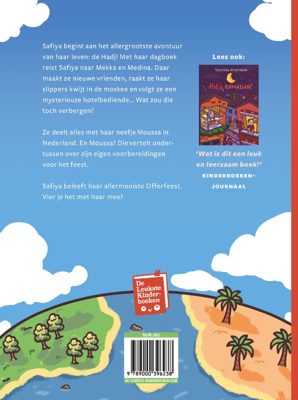 Safiya begint aan het allergrootste avontuur van haar leven: de Hadj! Met haar dagboek reist Safiya naar Mekka en Medina. Daar maakt ze nieuwe vrienden, raakt ze haar slippers kwijt in de moskee en volgt ze een mysterieuze hotelbediende… Wat zou die toch verbergen?