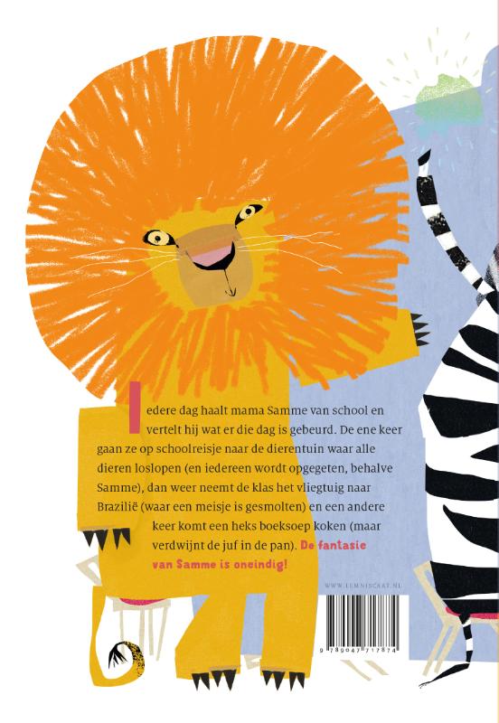 En het is onduidelijk wie de grootste fantasie heeft: Samme, Anke Kranendonk die zijn verhalen verzon, of Barbara de Wolf die ze illustreerde. Een verrukkelijk vrolijk voorleesboek!