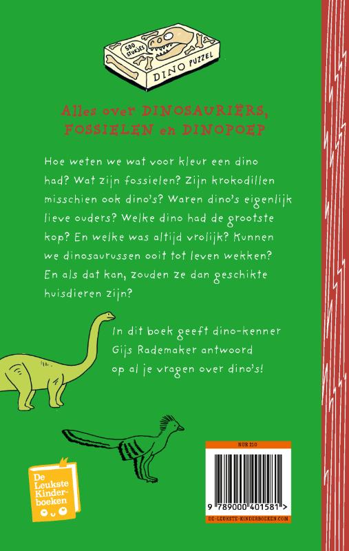 Hoe weten we wat voor kleur een dino had? Wat zijn fossielen? Zijn krokodillen misschien ook dino’s? Waren dino’s eigenlijk lieve ouders? Zouden we dinosaurussen ooit tot leven kunnen wekken, net als in Jurassic Park? En als dat kon, zouden ze dan geschikte huisdieren zijn? In dit fijne, nieuwe deel in de Bliksemlezen-serie beantwoordt Gijs Rademaker deze én alle andere vragen die je altijd al wilde stellen over dino’s en de wereld waarin ze leven.