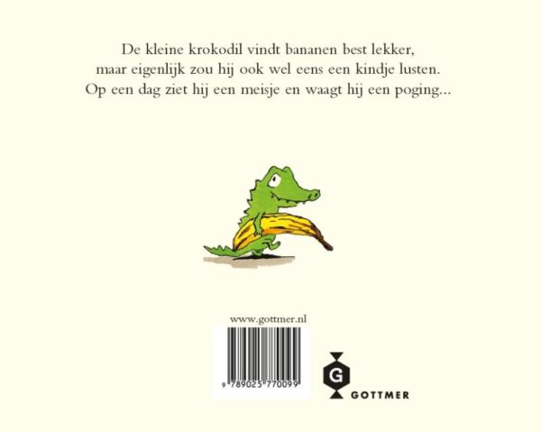 Een klein krokodilletje eet altijd bananen, maar op een dag heeft hij trek in iets anders: hij zou wel eens een kindje lusten! Zijn ouders weten zich geen raad en proberen hem allerlei ander lekkers voor te schotelen. Maar het kleine krokodilletje is vastbesloten en gaat op zoek naar een kindje. Hij komt een meisje tegen, maar die laat zich niet zomaar opeten…