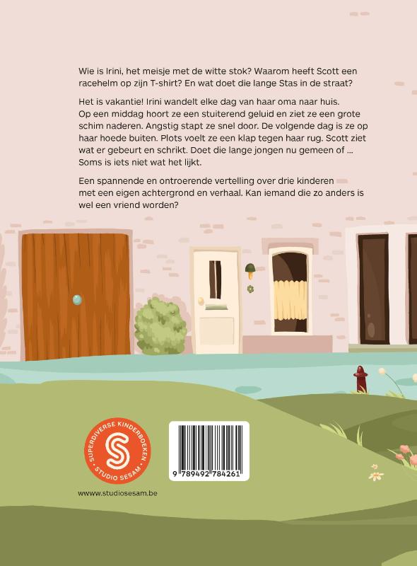 Wie is Irini, het meisje met de witte stok? Waarom heeft Scott een racehelm op zijn T-shirt? En wat doet die lange Stas in de straat?
