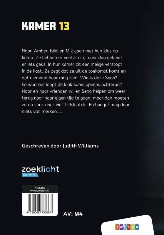Noor, Amber, Bilal en Mik gaan met hun klas op kamp. Ze hebben er veel zin in, maar dan gebeurt er iets geks. In hun kamer zit een meisje verstopt in de kast. Ze zegt dat ze uit de toekomst komt en dat niemand haar mag zien. Wie is deze Sena? En waarom loopt de klok soms opeens achteruit? Noor en haar vrienden willen Sena helpen om weer terug naar haar eigen tijd te gaan, maar dan moeten ze op zoek naar vier tijdsleutels. En hun juf mag daar niets van merken …