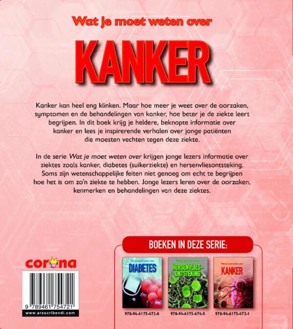 Kanker kan heel eng klinken. Maar hoe meer je weet over de oorzaken, symptomen en de behandelingen van kanker, hoe beter je de ziekte leert begrijpen. In dit boek krijg je heldere, beknopte informatie over kanker en lees je inspirerende verhalen over jonge patiënten die moesten vechten tegen deze ziekte.