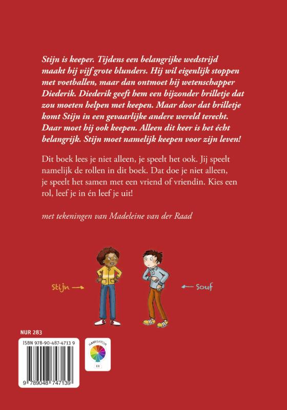 Stijn is keeper. Tijdens een belangrijke wedstrijd maakt hij vijf grote blunders. Hij wil eigenlijk stoppen met voetballen, maar dan ontmoet hij wetenschapper Diederik. Diederik geeft hem een bijzonder brilletje dat zou moeten helpen met keepen. Maar door dat brilletje komt Stijn in een gevaarlijke, andere wereld terecht. Daar moet hij ook keepen. Alleen dit keer is het écht belangrijk. Stijn moet namelijk keepen voor zijn leven!