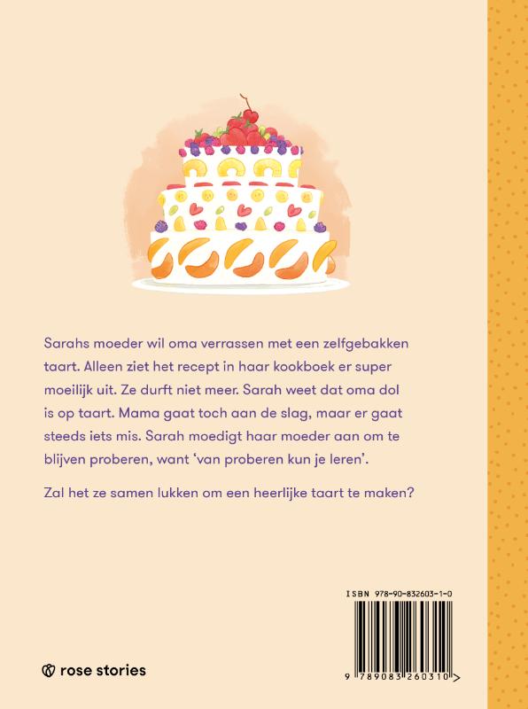 Sarahs moeder wil oma verrassen met een zelfgebakken taart. Alleen zien de recepten in haar kookboek er hartstikke moeilijk uit. Ze durft niet meer. Sarah vertelt mama dat ze het toch moet proberen. Mama gaat aan de slag, maar het gaat steeds mis. De cake brandt aan, de slagroom stijft niet op en als de taart klaar is, is hij eigenlijk heel saai. Mama wil iedere keer opgeven, maar dan zegt Sarah ‘van proberen kun je leren’. Dat zeiden papa en mama ook altijd tegen haar toen ze leerde fietsen zonder zijwieltjes, het alfabet uit haar hoofd probeerde te leren en zelf haar veters probeerde te strikken. Zal het ze samen lukken om een heerlijke taart te maken?