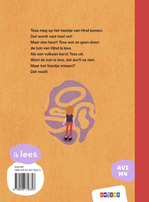 Tess wilde zo graag naar het feestje van Hind. Maar als ze hoort wat ze gaan doen, krijgt ze een knoop in haar maag. De tuin is lava, dat vindt ze veel te eng. ‘Soms moet je iets doen, wat je niet durft,’ zei haar vader. Dus Tess gaat. Maar dan gebeurt precies waar ze bang voor was …