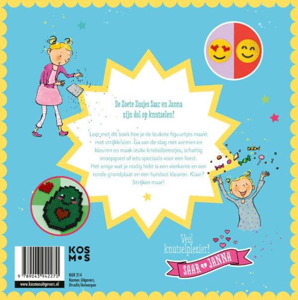 De Zoete Zusjes zijn dol op knutselen. Het liefst knutselen ze elke dag iets anders! In dit creatieve knutselboekje gaan Saar en Janna aan de slag met strijkkralen. Met vormen en kleuren maak jij ook leuke kriebelbeestjes, schattig snoepgoed of iets speciaals voor een feest. Klaar? Strijken maar! De kunstwerkjes zijn ook superleuk om cadeau te doen. Het enige wat je nodig hebt is een basisplank en een handvol kleuren.